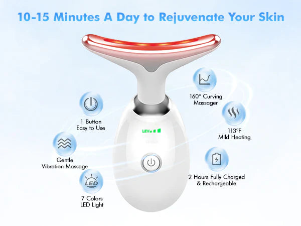Absolutely. The Luravey® 7-in-1 LED Facial Sculptor uses clinically proven LED wavelengths (630 nm, 525 nm, 415 nm) combined with heat therapy and micro-vibrations to target all three layers of aging skin — the surface, dermal, and muscular layers. Most users see visible lifting and glow within 2–4 weeks of consistent use.